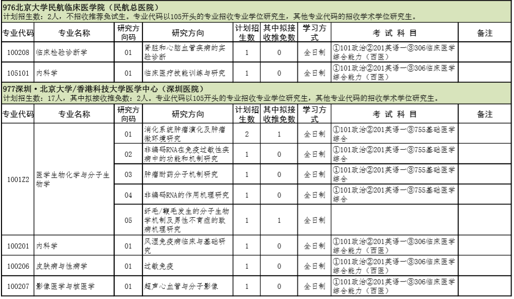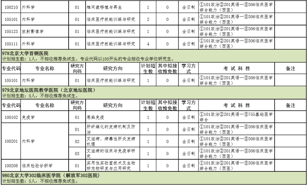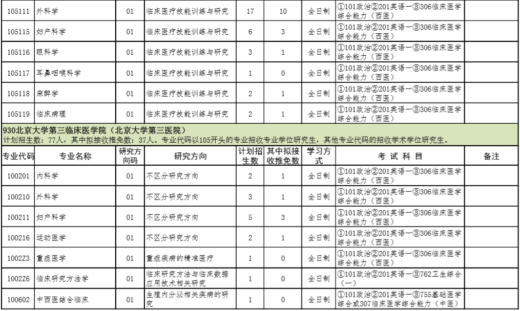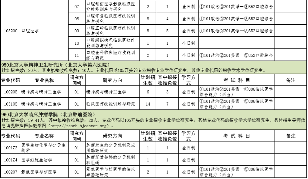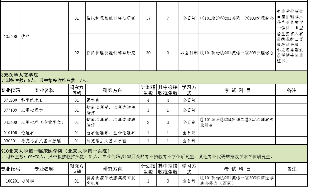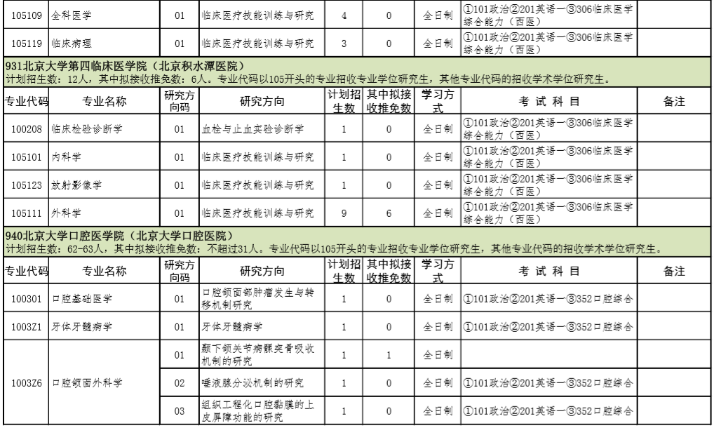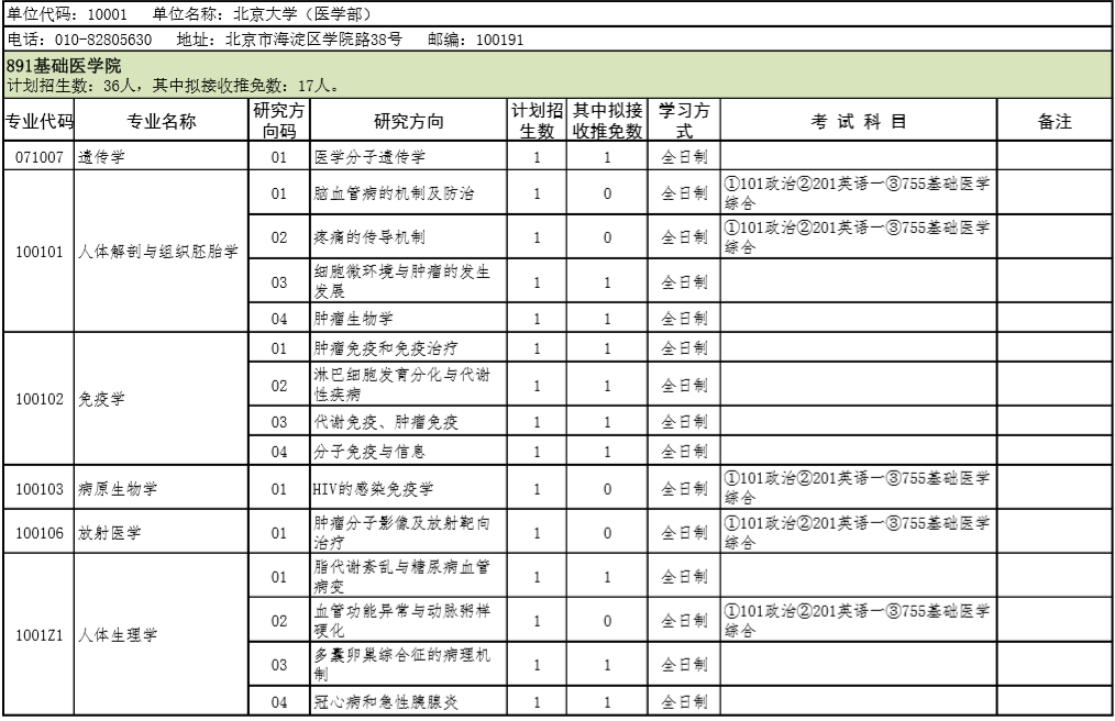 2021年北京大学医学部硕士研究生招生专业目录