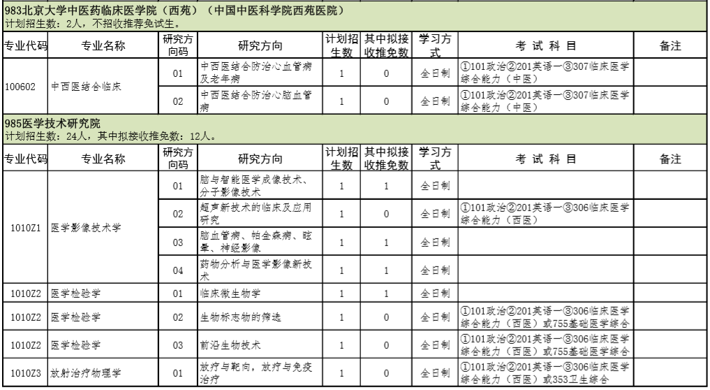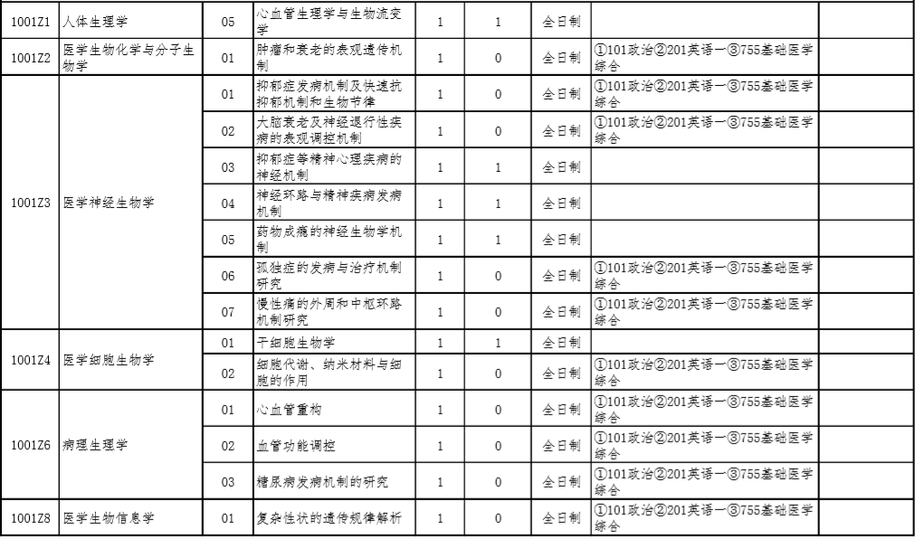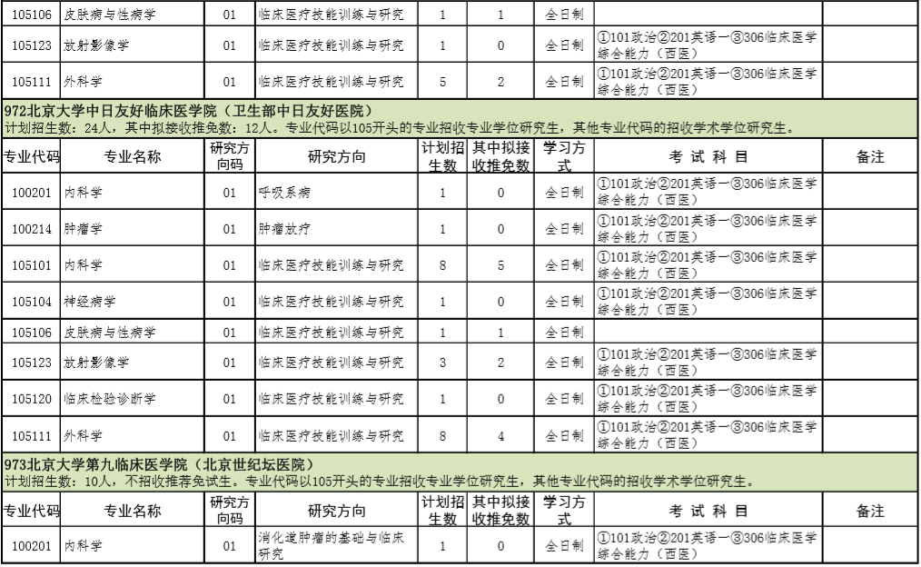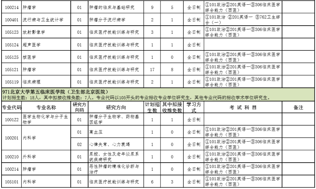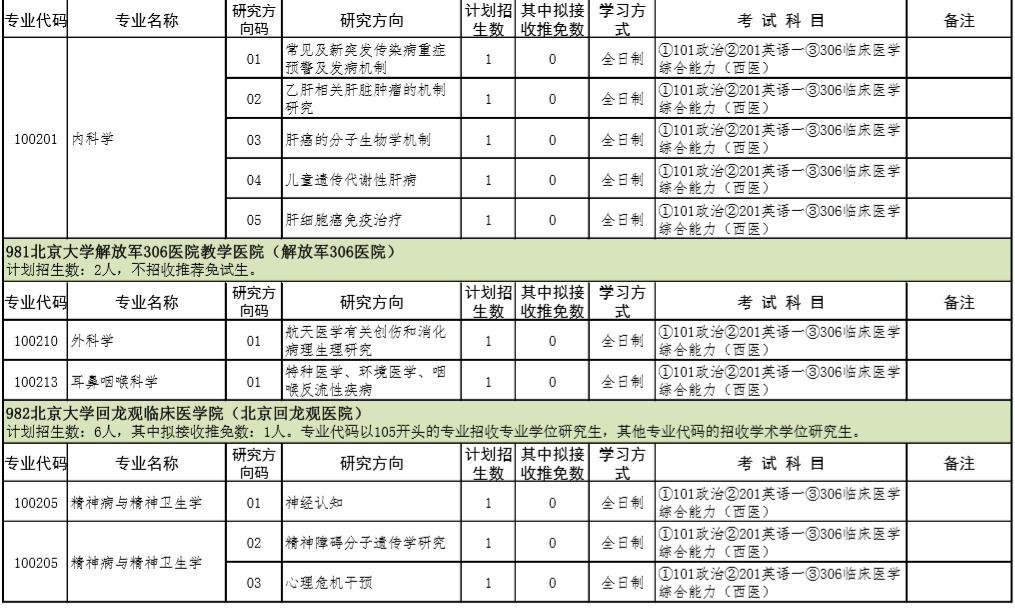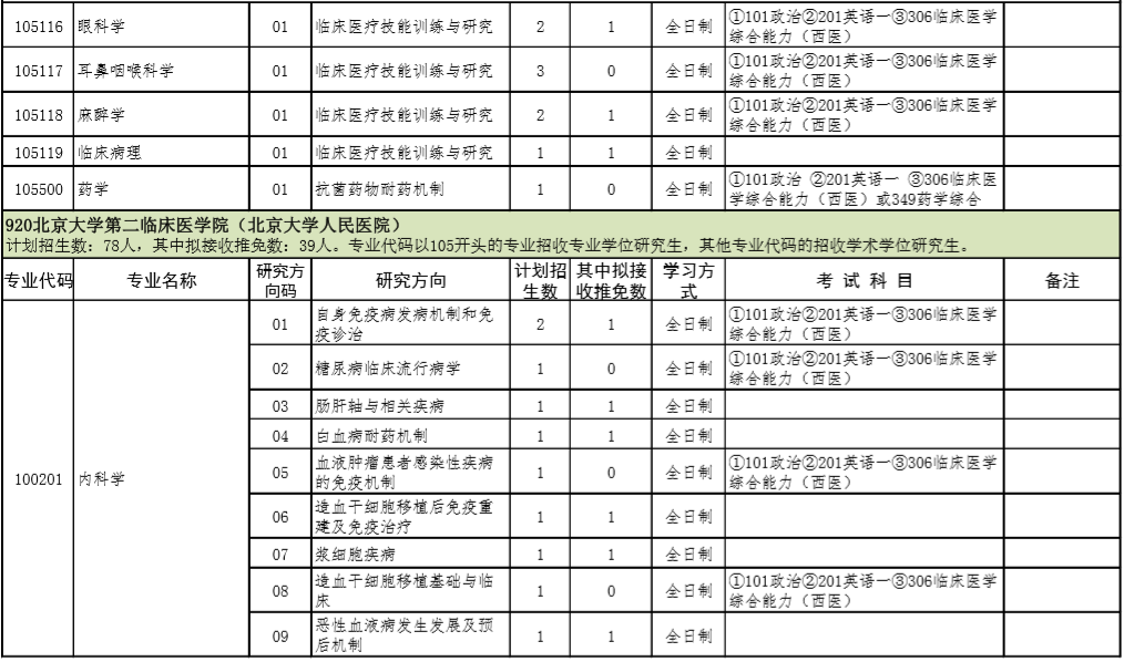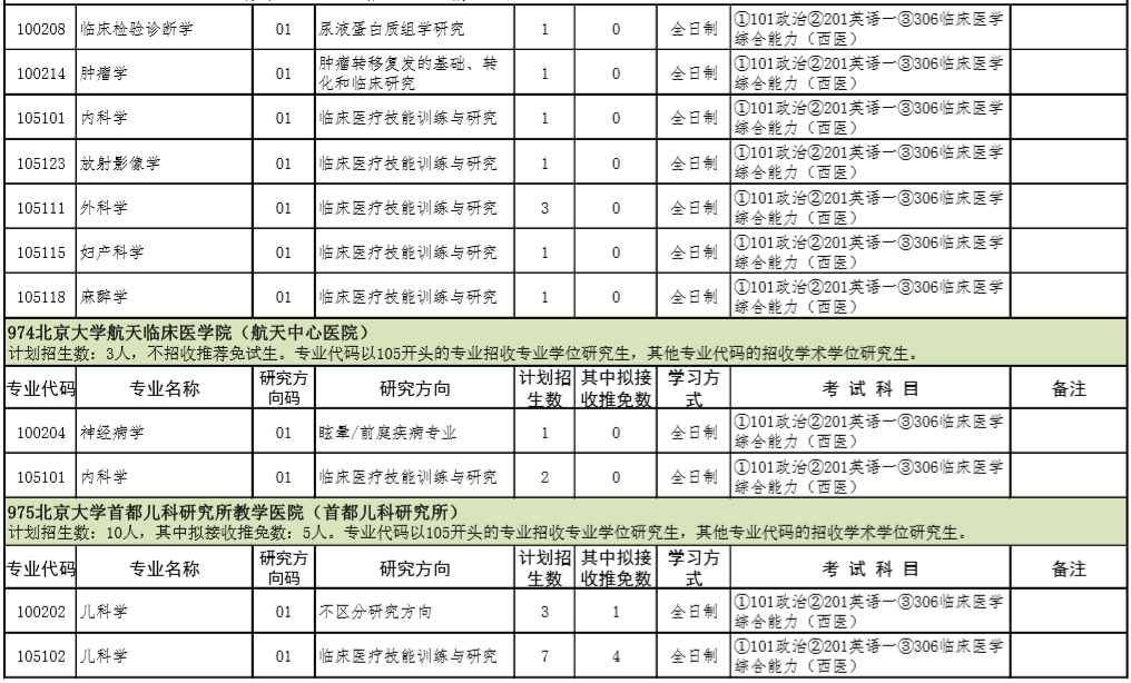 2021年北京大学医学部硕士研究生招生专业目录