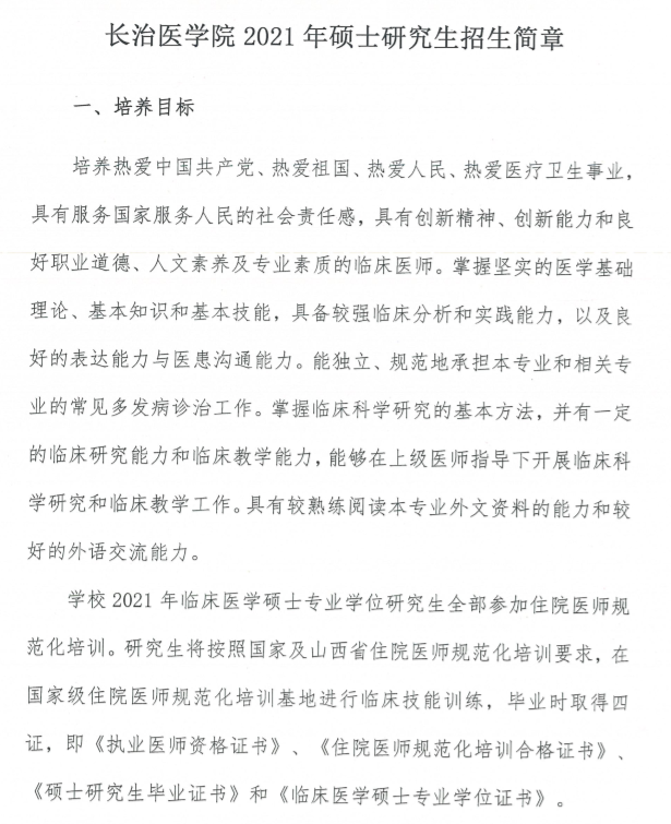请有意向的同学请一定注意查看简章内容啦!以上是医学教育网小编整理的“长治医学院发布2021年硕士研究生招生简章 ”全部内容,想了解更多医学考研知识及内容,请点击医学教育网。希望各位同学能选到自己心仪的院校并顺利通过初试!