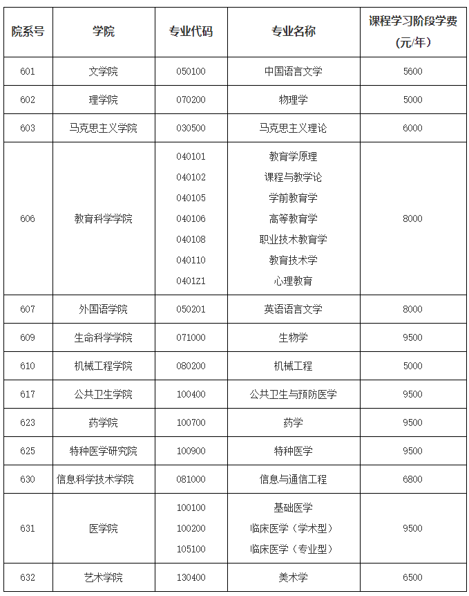 二、招生专业、收费标准