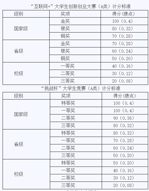 3.不同类型的竞赛项目可累加计分;多次参加同一类型(不论名称是否完全一致)项目比赛并多次获奖的,除“互联网+”大学生创新创业大赛可累加计分(须为不同项目,而非同一项目的不同级别比赛)之外,其他项目只计一次最高分。