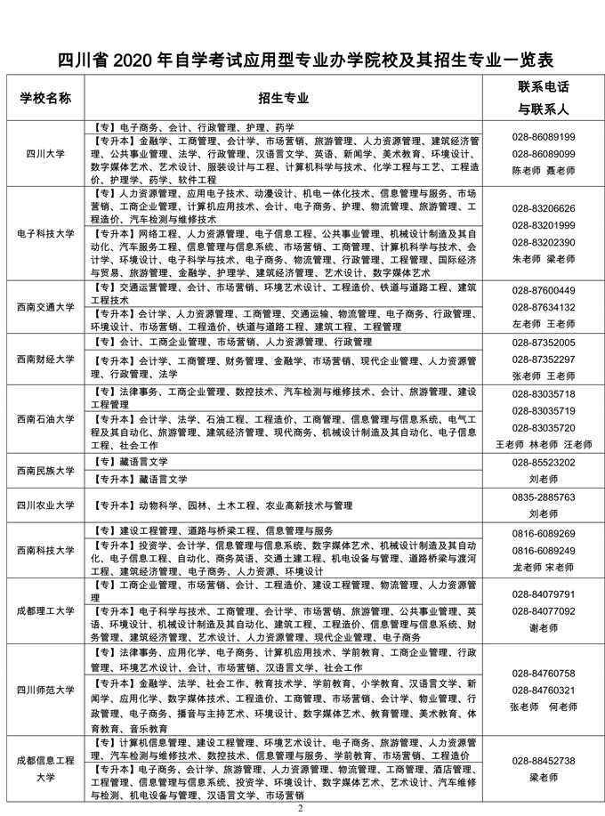 以上是医学教育网小编整理的“四川2020年自考应用型专业办学院校及其招生专业一览表”全部内容,想了解更多医学自考知识及内容,请点击医学教育网。