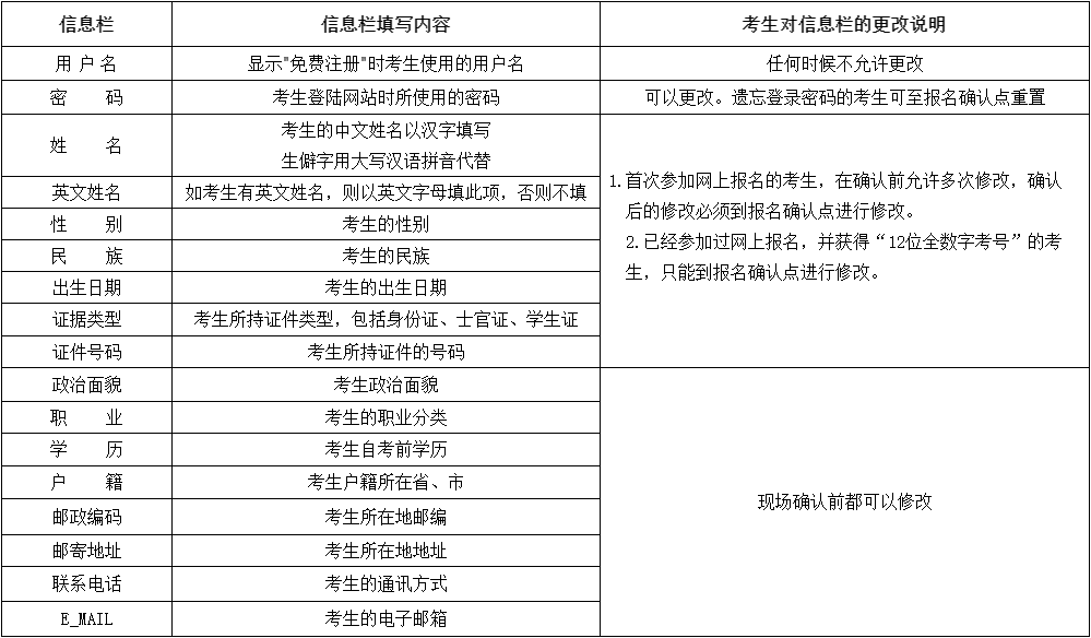 考生在提交报名信息前,应认真核对个人信息及报考课程,相关信息一经提交,无法修改。