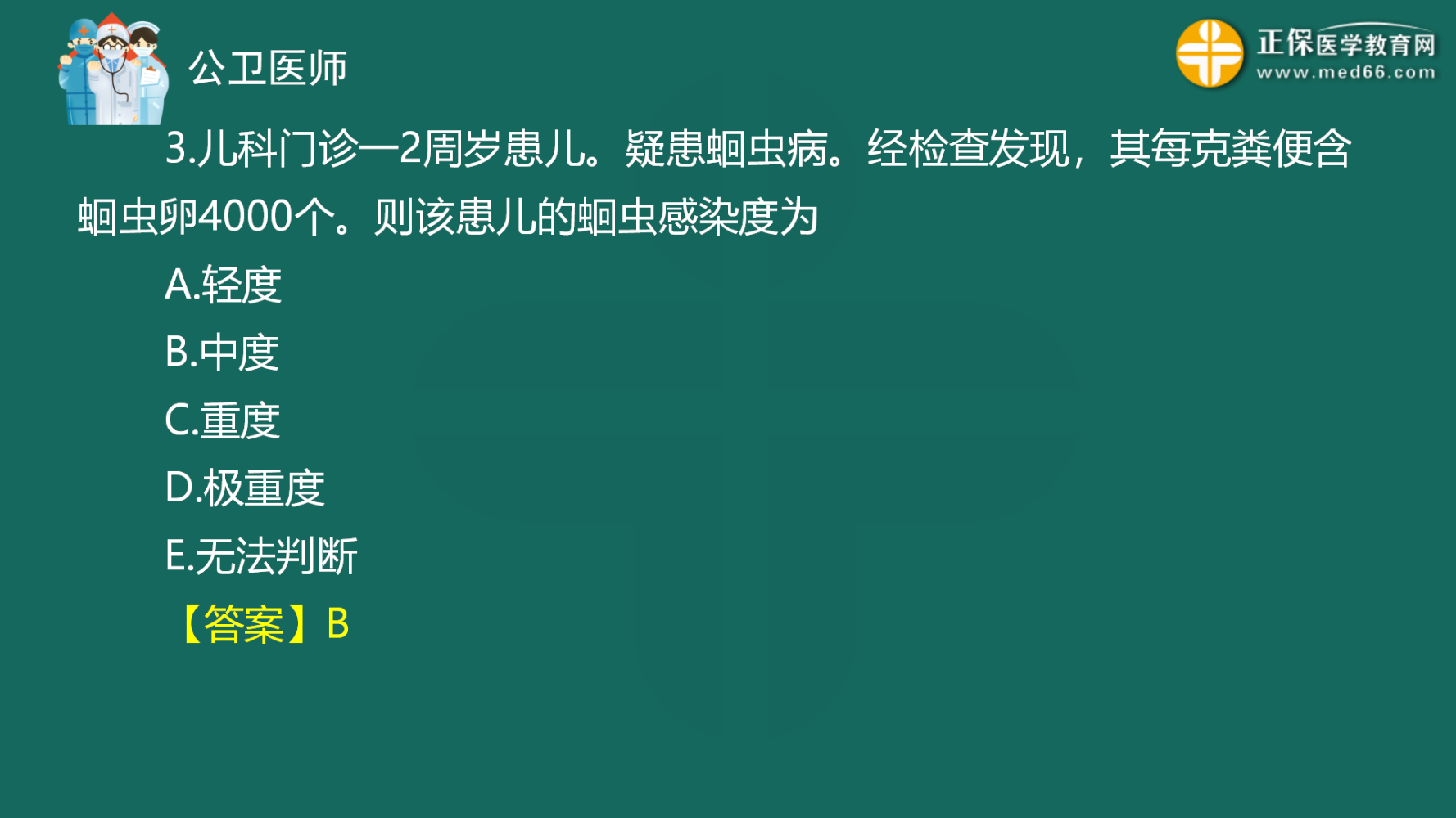 儿科门诊一2周岁患儿。疑患蛔虫病...则该患儿的蛔虫感染度为...