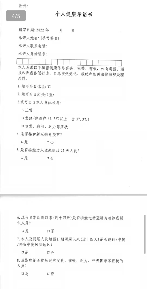 榆林市2022年全科主治医师考试疫情防控告知书