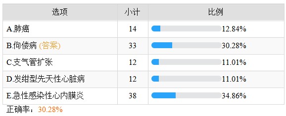 杵状指(趾)的常见疾病中,不包括的是——正确率30.28%