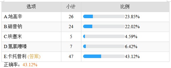 稳定性心绞痛首选药物是——正确率65.14%