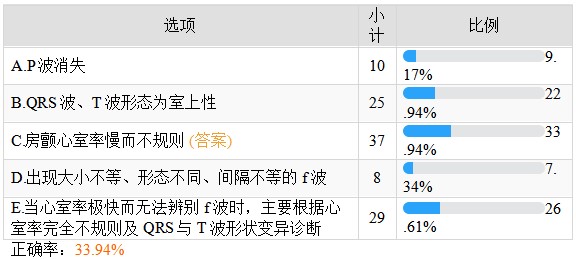 下列不属于房颤的心电图表现的是——正确率33.94%