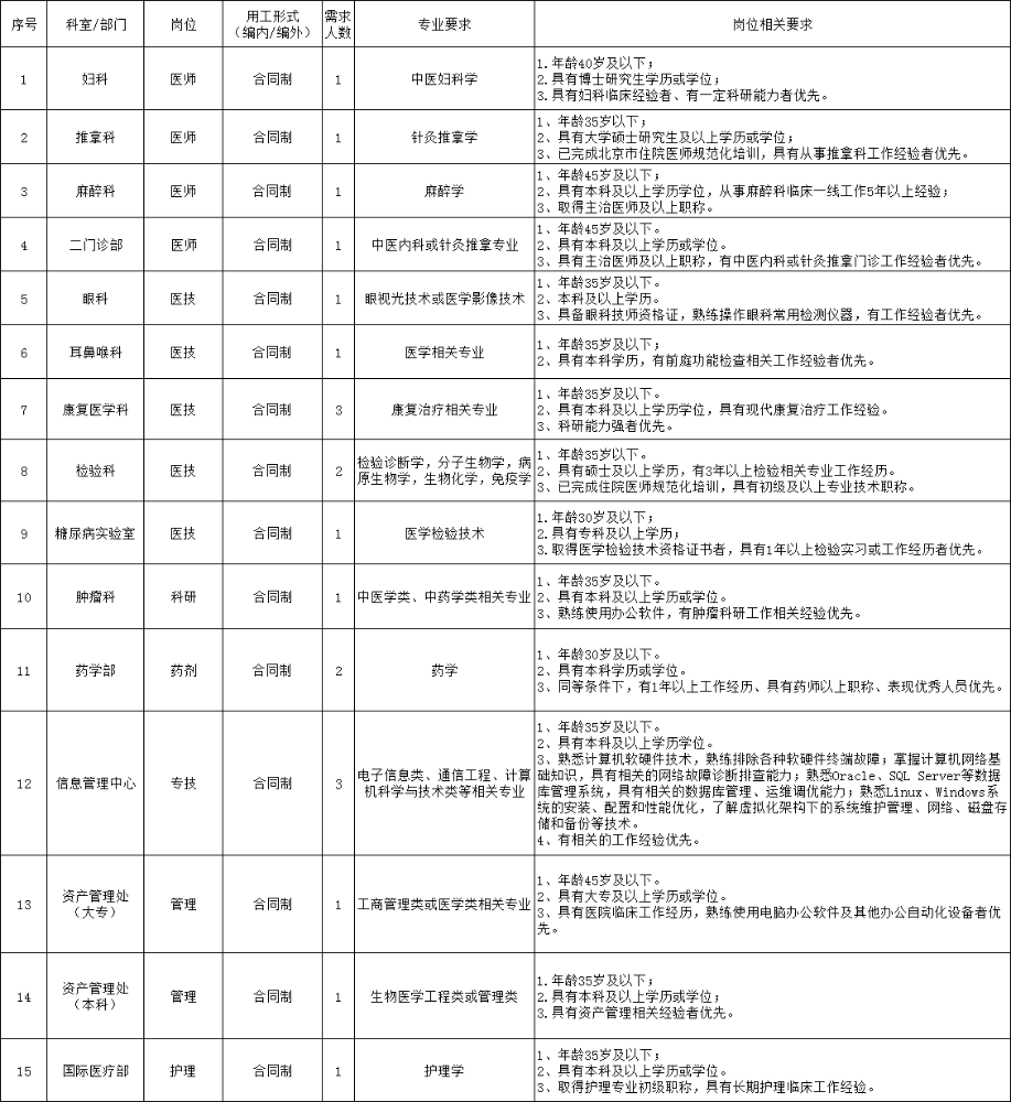 中国中医科学院广安门医院2023年招聘合同制工作人员21名