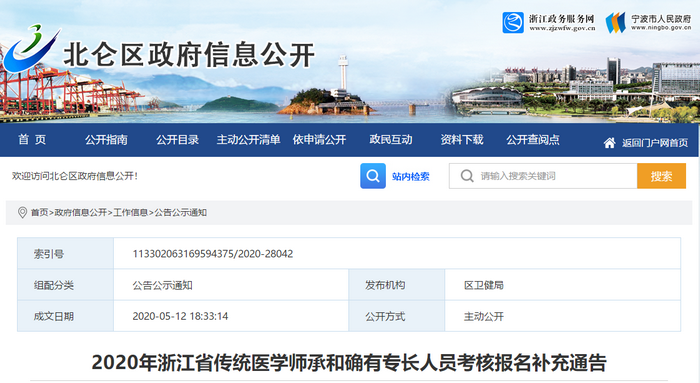 宁波市鄞州区卫生局2020传统师承和确有专长考核报名的补充通知