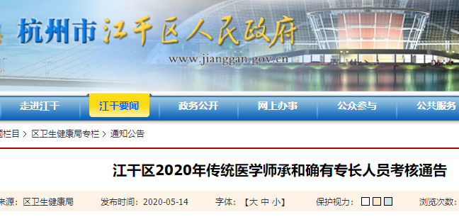 2020年杭州市江干区传统医学师承和确有专长人员考核通告