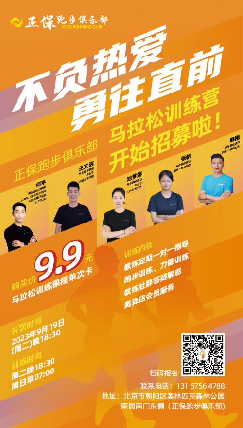如果你也有一个跑马梦,如果你也想轻松科学奔跑,渴望驰骋、追风,感受速度与激情,快来参加正保跑步俱乐部成人马拉松训练营吧!(地点为奥森南园南门东侧正保跑步俱乐部)不论你是跑步小白还是跑圈大神,只要你热爱跑步、想挑战自我,我们都欢迎你的加入!现在正保跑步俱乐部课程全新升级,只需9.9元,即可购买正保马拉松训练营单次课程。与正保一起开启新赛季训练、创造不平凡!