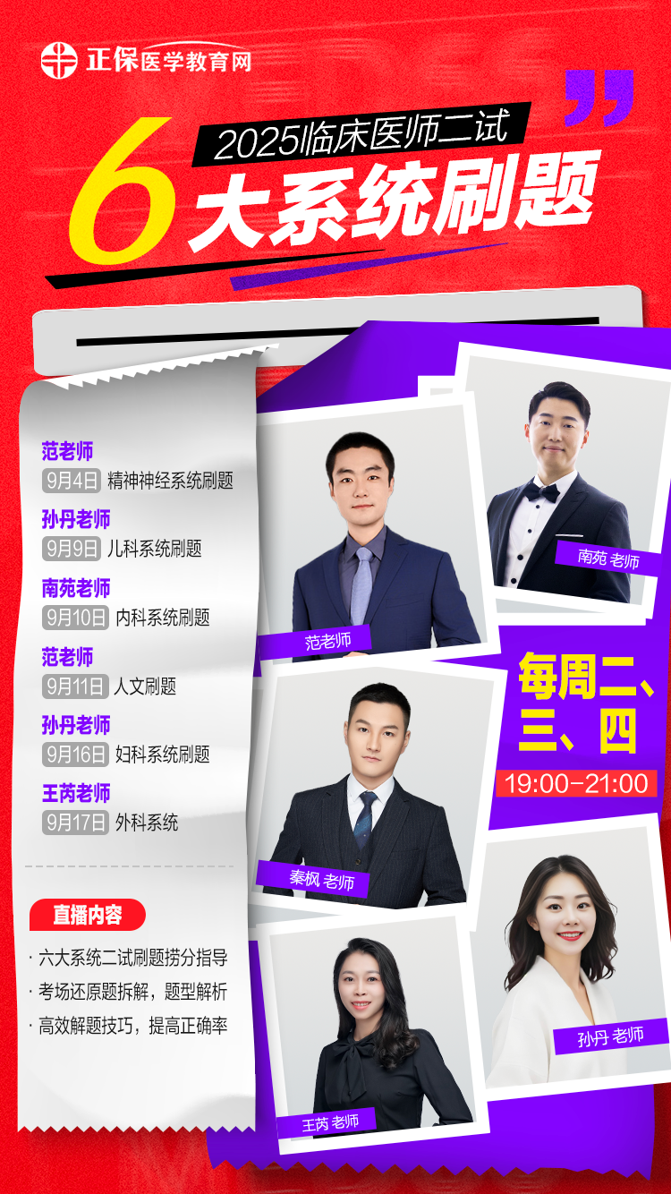 医学硕士,三甲主治,南苑老师有多年临床工作经验且深耕于医学教学一线多年,专注于医学教育及医师资格考试的研究、培训指导等工作,对考试大纲、题型以及考前培训有着深厚的理论基础和实践经验。从事医考培训工作至今,每年直接回应并精准解决学员各类问题逾三千条,以切实行动践行“从学员疑问中来,到学员心中去”的教学理念。深入挖掘每一位学员的困惑点,精准把握其知识盲区,确保每一次授课都能直击要害,不仅传授知识,更激发学员主动学习的热情与动力。在授课过程中,以实战经验为引导,创新教学方法为核心,致力于让复杂医学知识通俗易懂,帮助学员轻松掌握、深刻记忆并灵活运用。