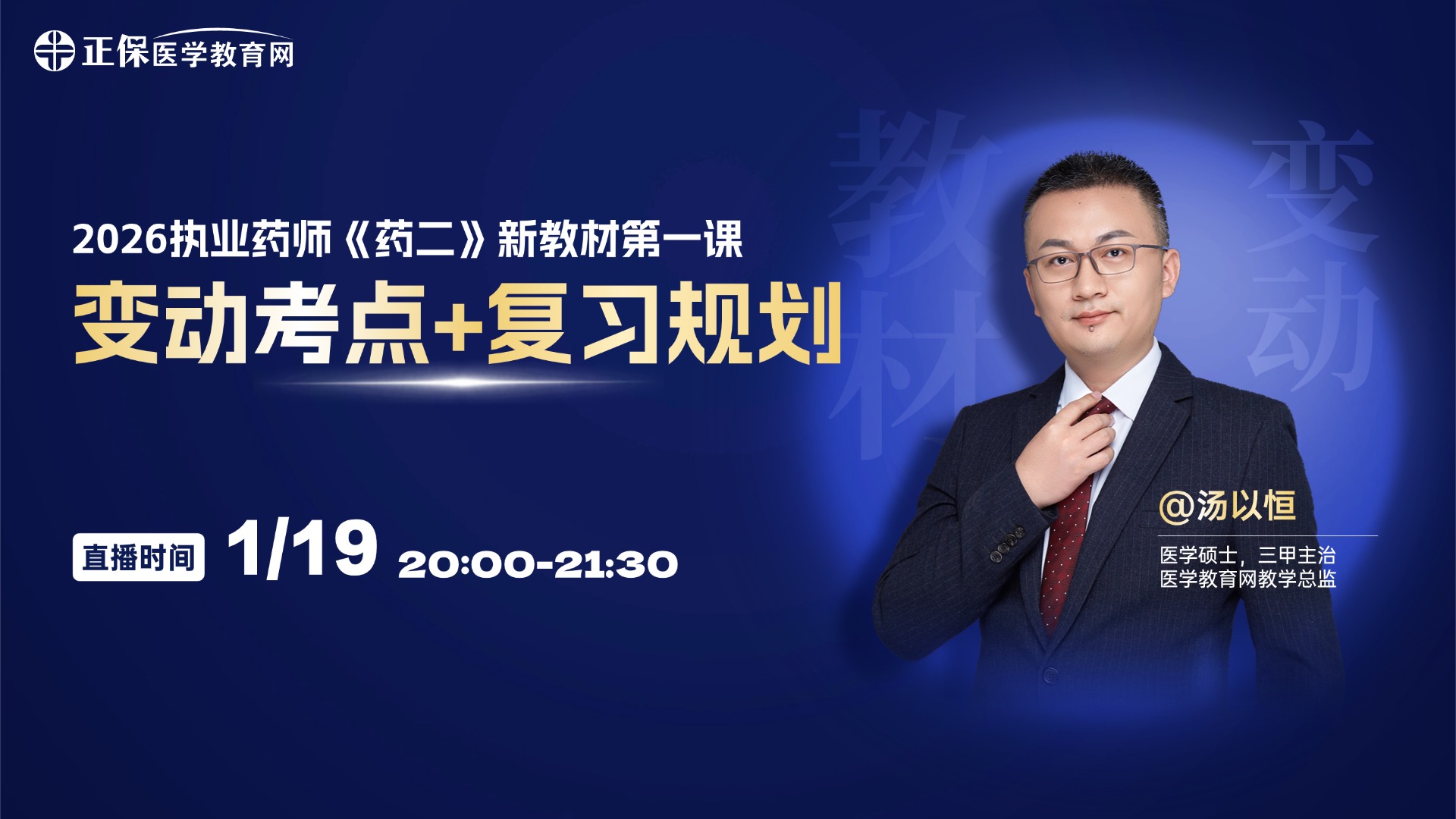 2026版执业药师新教材已公布,复习方向迷茫?为了帮助大家快速掌握重点变化,优化学习路径,提升备考效果。网校特邀汤以恒老师将分享变动解析,解决你的复习难题!