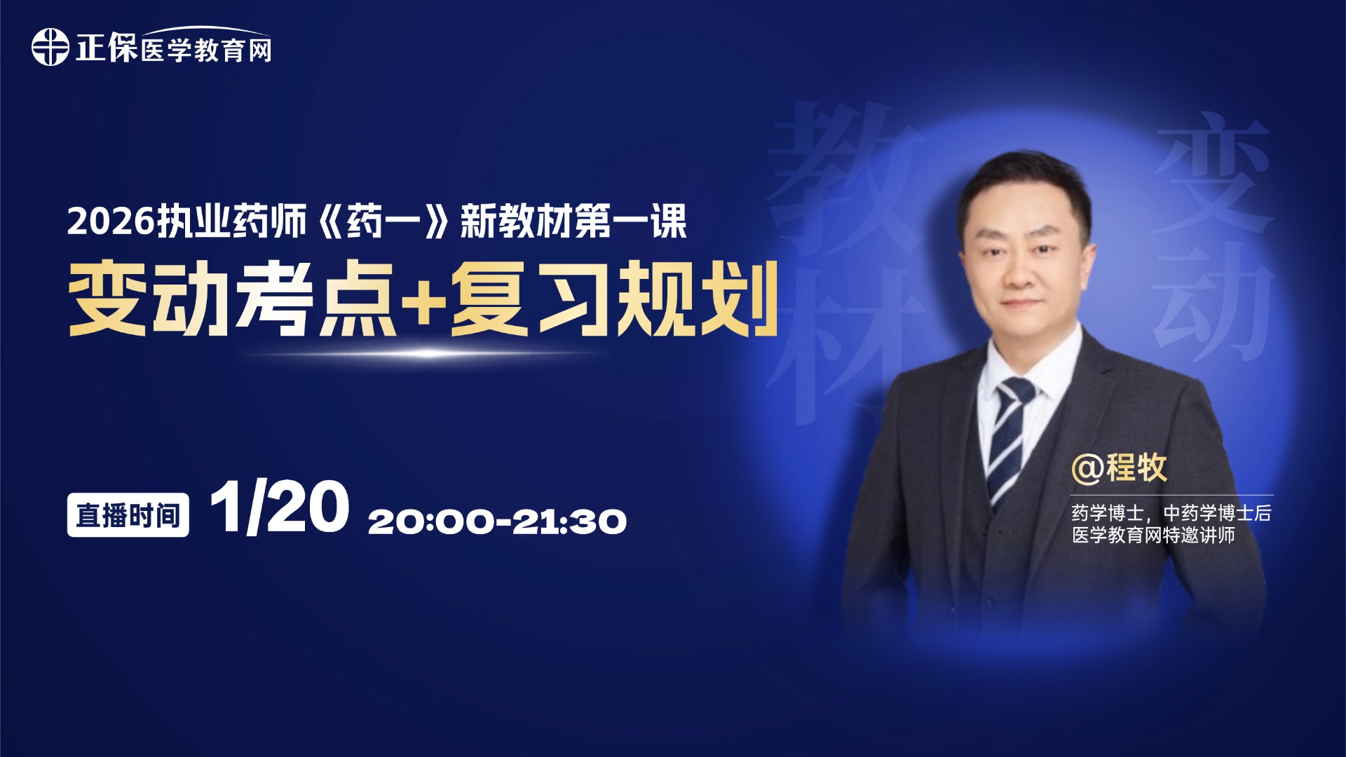 2026版执业药师新教材已公布,复习方向迷茫?为了帮助大家快速掌握重点变化,优化学习路径,提升备考效果。网校特邀程牧老师将分享变动解析,解决你的复习难题!