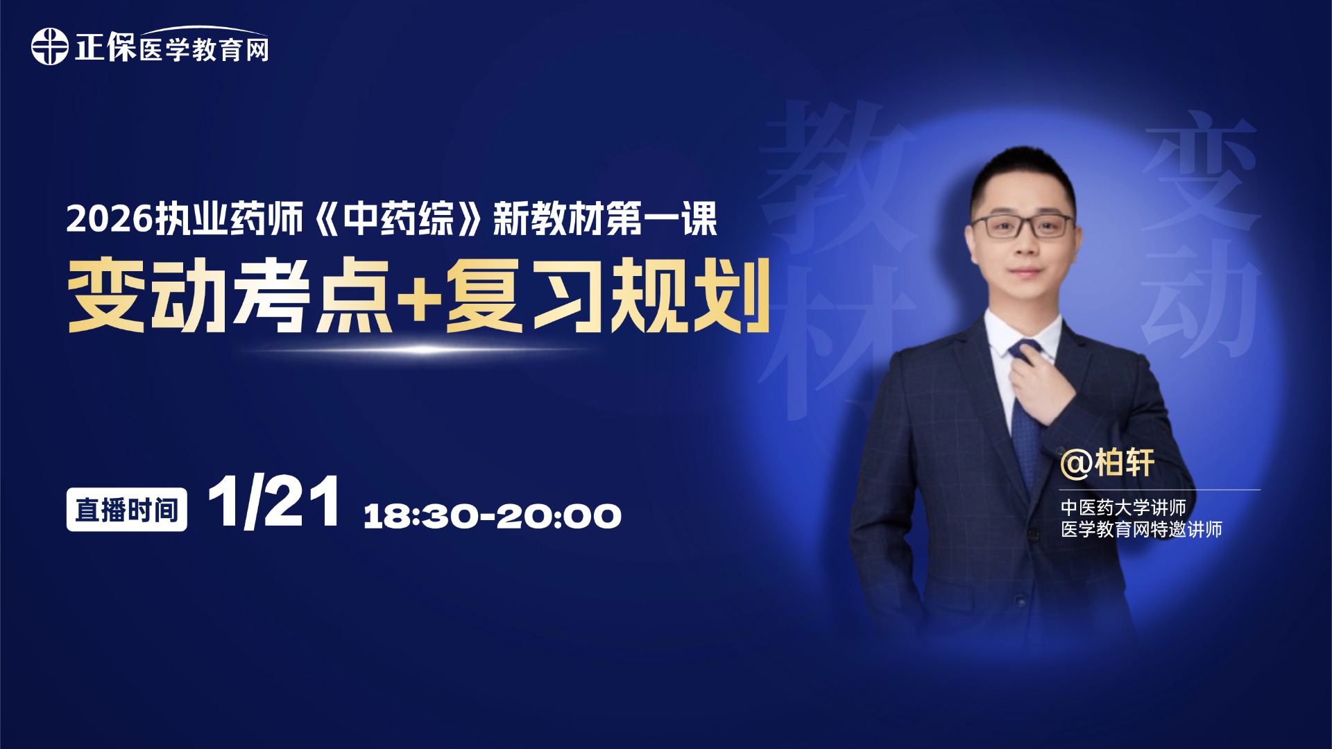 2026版执业药师新教材已公布,复习方向迷茫?为了帮助大家快速掌握重点变化,优化学习路径,提升备考效果。网校特邀柏轩老师将分享变动解析,解决你的复习难题!
