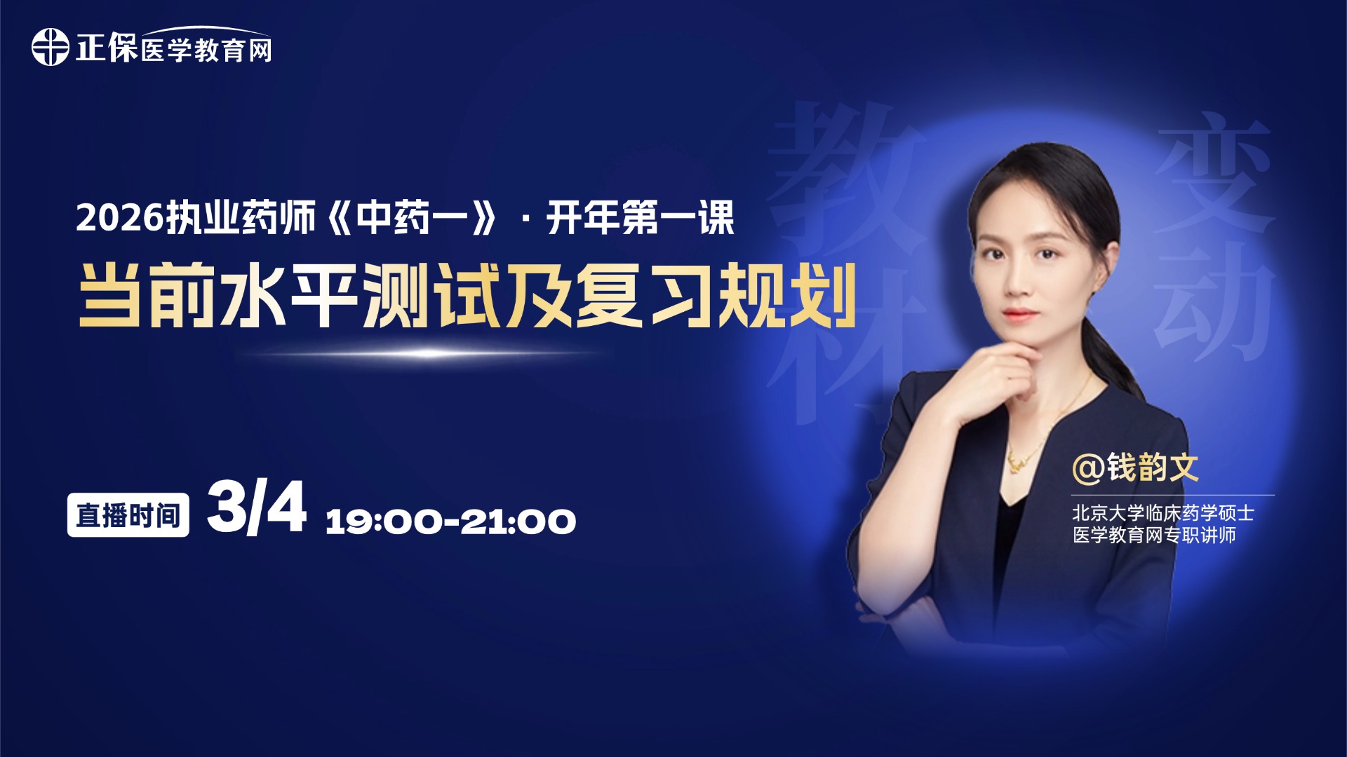 2026执业药师备考开年第一课重磅来袭!名师亲编50道摸底测试题,精准检测你的真实水平;深度解析各章节分值占比与复习优先级,帮你抓住高分重点;更针对考4科、3科、2科及1科不同人群,定制未来半年科学备考规划。即刻预约直播,抢占备考先机,一次通关!