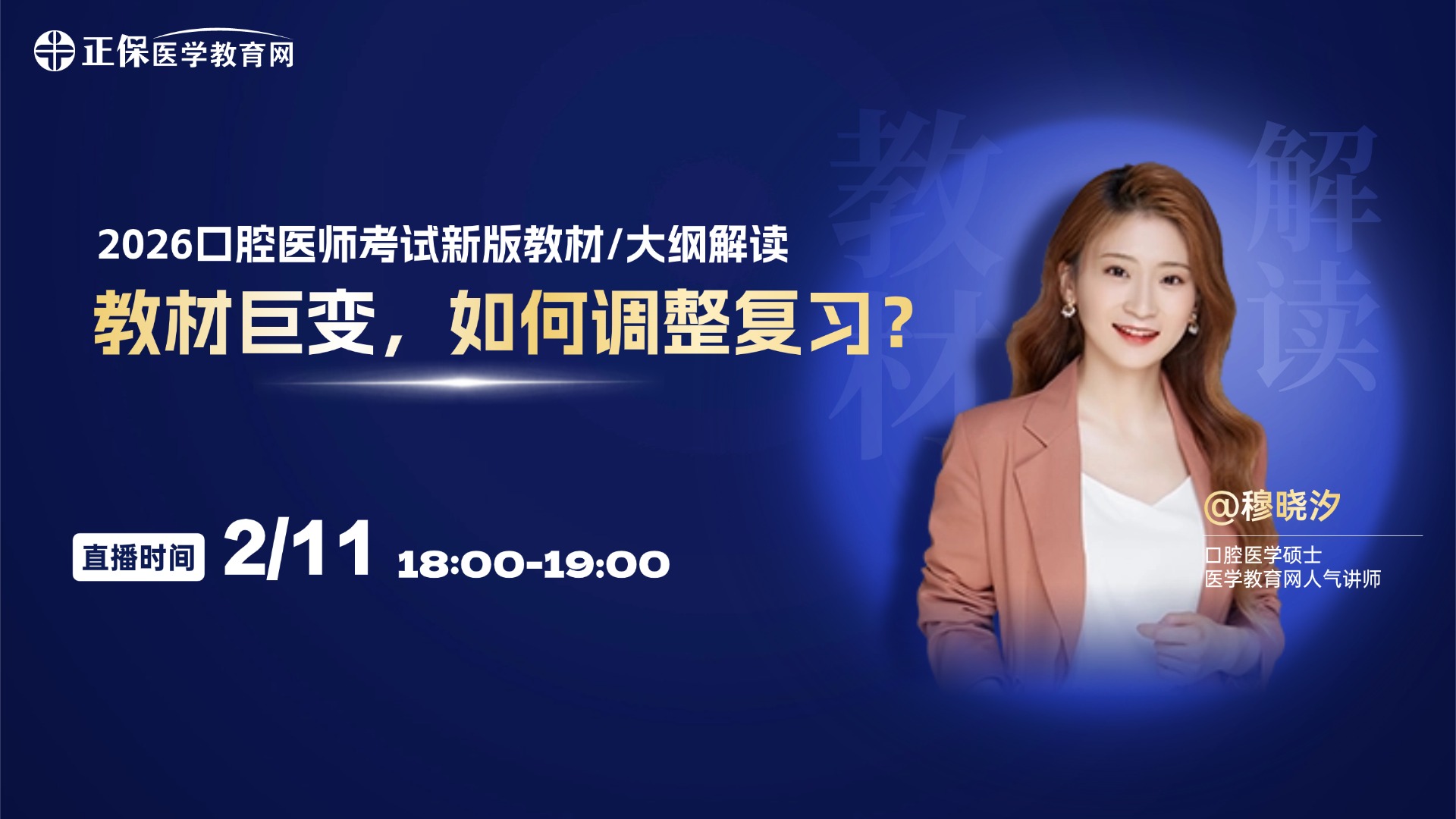 重磅!2026年口腔执业医师及助理医师考试教材巨变,新增内容对考试影响如何?医考生如何调整复习节奏?医学教育网教学团队在收到官方教材后第一时间整理出变动情况,特邀老师为大家做详细解读,事关备考,不见不散!
