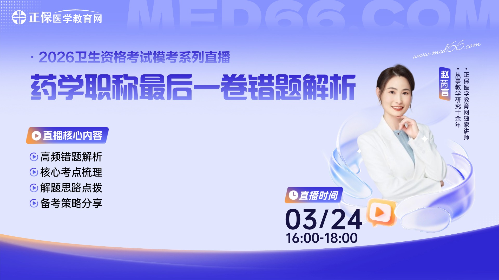 备考药学职称考试,错题反复困扰,复习方向难把握?赵苪言老师直播精讲典型错题,梳理核心考点与解题逻辑。掌握高效复习思路,明晰备考重点,增强应试信心。3月24日16:00,点击预约,助力从容备考!