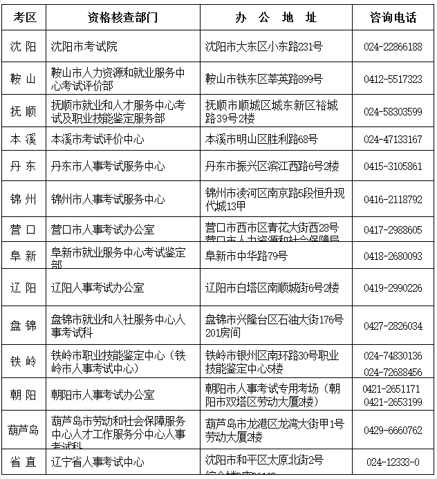 驻沈中、省直单位报考人员核查与监管工作由省人事考试中心负责;其他各市报考人员资格核查与监管工作由所在市人事考试部门负责。全省人事考试资格核查部门咨询电话见附件2。