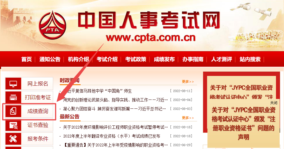 第一步,进入执业药师成绩查询官方网站:中国人事考试网