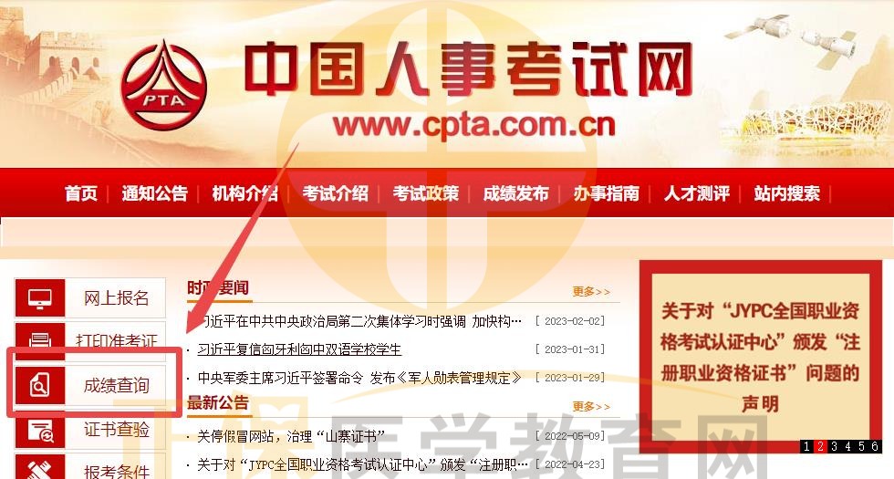 第一步,进入执业药师成绩查询官方网站:中国人事考试网