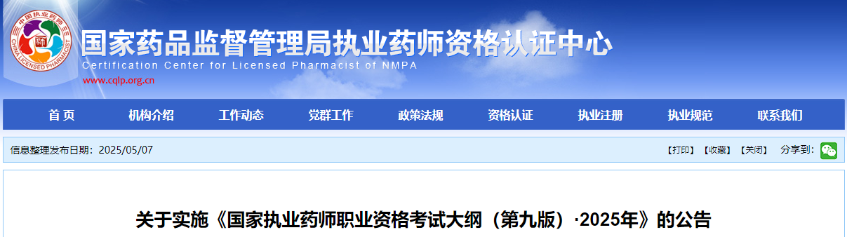 附件: 《国家执业药师职业资格考试大纲(第九版)·2025年》