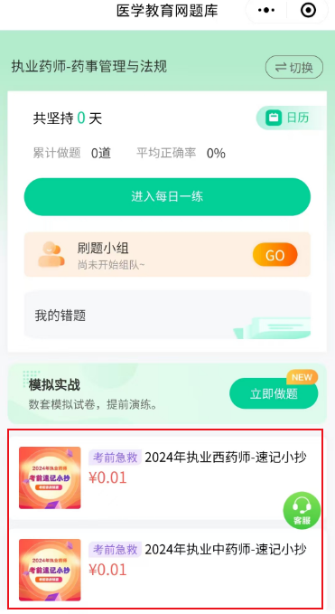 执业西药师四科,100*4=400个速记考点,仅需0.1元!