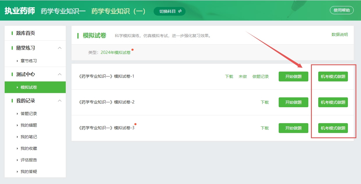 以上就是网校为付费学员以及未付费学员提供的不同的模拟入口,考生可根据自己的情况自行选择进行全真模拟!最好可以多做几套试卷,熟悉整个操作流程!预祝大家顺利通过执业药师考试!