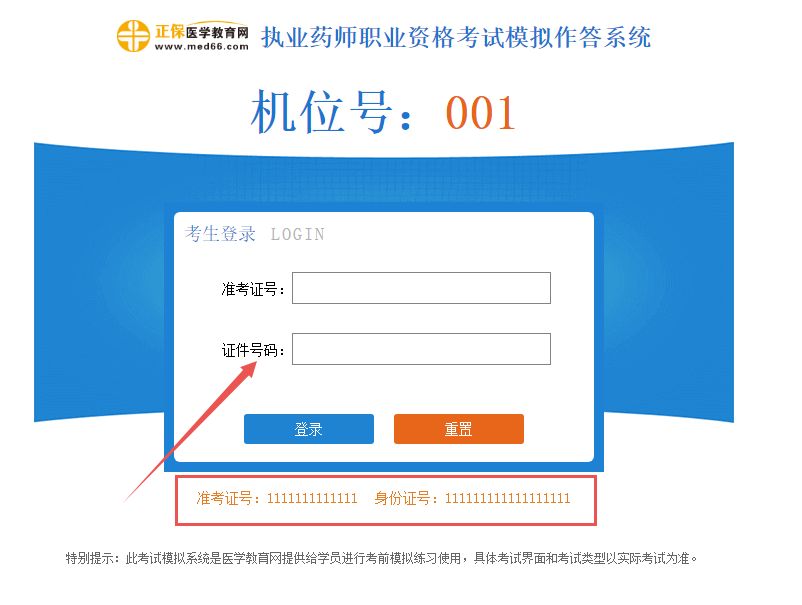 4、进入机考模拟界面,输入下方准考证号和证件号码,即可开始模考了。