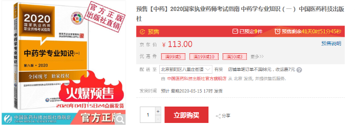 医学教育网工作人员咨询“中医药科技出版社旗舰店”,获悉:2020年执业药师考试官方教材预计4月15号前发布!
