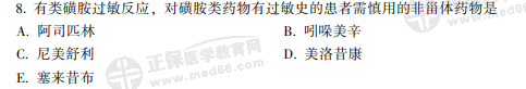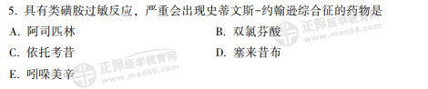 5、某患者新诊断为退行性膝关节炎,既往有磺胺过敏史,不宜选用的非甾体抗炎药是:塞来昔布。