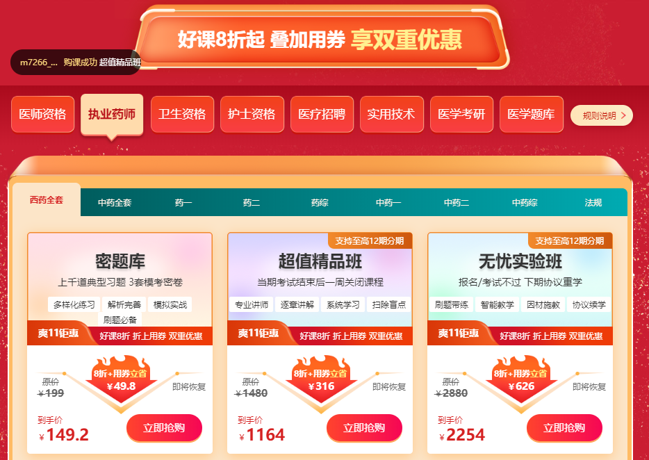 肉眼可见的省钱攻略,广大执业药师考生们抓紧时间“囤课”吧!