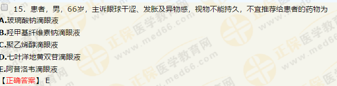 41.患者,男,36岁,近期因看电脑时间过长出现眼睛干涩、酸困等症状,该患者适宜选用药物是