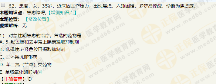 60.适用于急性期焦虑患者短期服用的药物是(A)
