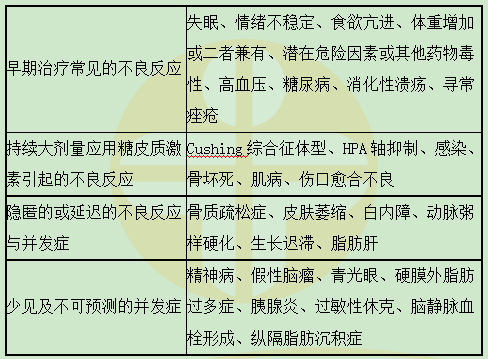 【答案解析】持续大剂量应用糖皮质激素引起的不良反应:Cushing综合征体型、HPA轴抑制、感染、骨坏死、肌病、伤口愈合不良。