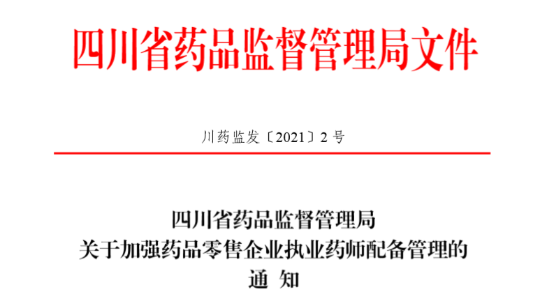 四川省药品监督管理局发布了《关于加强药品零售企业执业药师配备管理的通知》(以下简称《通知》),对该省药品零售企业执业药师配备和管理提出了明确要求。