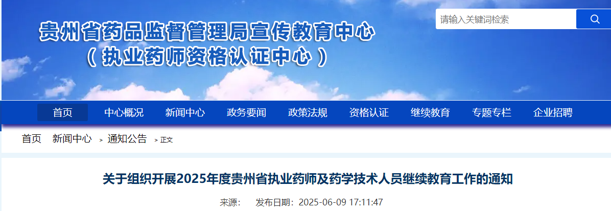 根据《专业技术人员继续教育规定》(人社部第25号令)、《国家药监局 人力资源和社会保障部关于印发执业药师职业资格制度规定和执业药师职业资格考试实施办法的通知》(国药监人〔2019〕12号)、《关于印发执业药师继续教育暂行规定的通知》(国药监人〔2024〕3号)等有关规定和要求,为进一步加强执业药师队伍建设,不断提高执业药师队伍的业务知识水平,更好地履行执业药师的职责,保障公众用药安全、有效、经济、合理,贵州省药品监督管理局面向全国对2025年度贵州省执业药师及药学技术人员继续教育施教机构项目进行框架协议采购,国家药品监督管理局高级研修学院、北京医大爱思唯尔教育科技有限公司、北京正保科技有限公司、河南正仁教育科技有限公司和北京金航联科技发展有限公司五家单位中标承担我省执业药师及药学技术人员继续教育培训工作。现将继续教育学习有关事项通知如下: