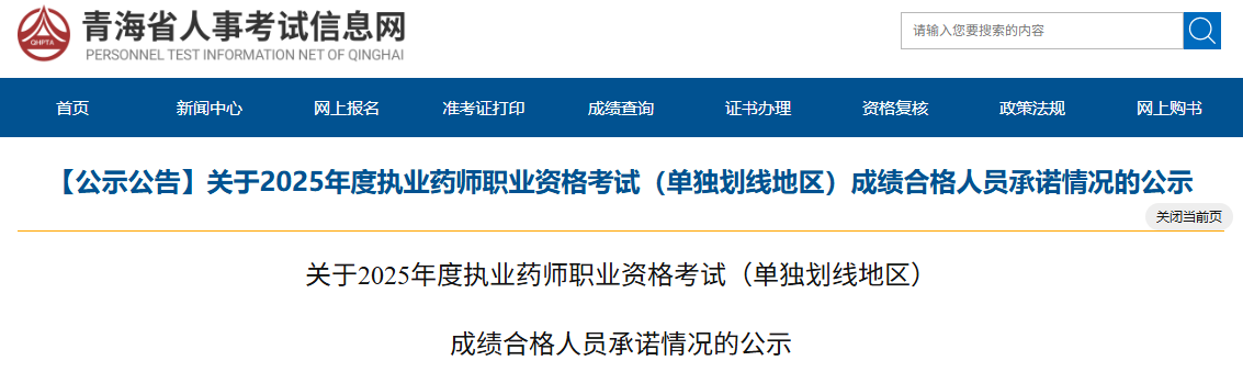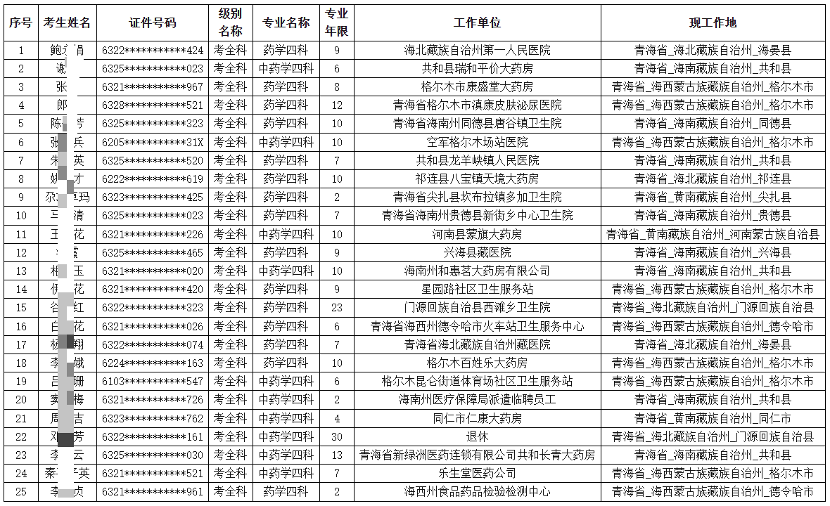 2025年度执业药师资格考试(单独划线地区)成绩合格人员承诺情况