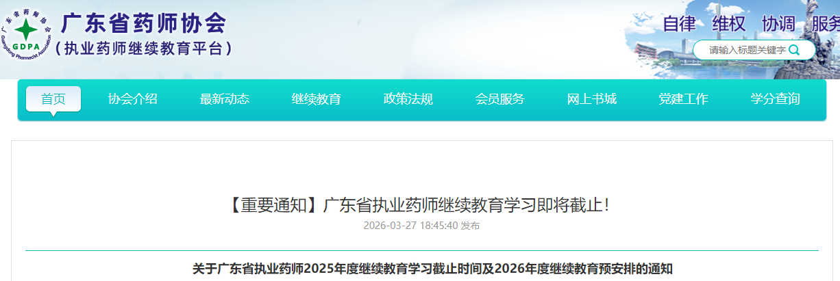 请各位执业药师,及时登录广东省执业药师管理系统(http://zyys.gdfda.cn/),完成相关继续教育学习。