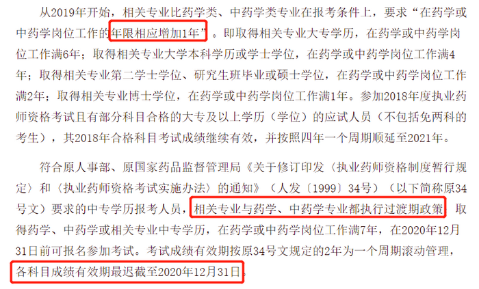 在2019年3月份,药品监督管理局和中国人事考试网发布的执业药师的报名条件明确表示:中专学历考生可以在2020年12月31日前报考执业药师考试,也就是说今年是中专学历考生参加执业药师考试的最后1次机会。