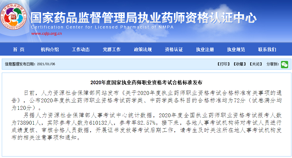 每年国家药品监督管理局执业药师资格认证中心都会公布执业药师合格标准,以及报考人数、参考人数和参考率,这些数据能够清楚的让考生们了解执业药师考试竞争力!详情如下!请考生查看!