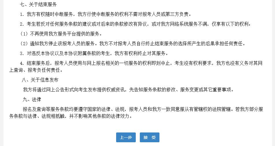 点击考生登录栏目中的【注册】按钮,进入用户注册界面,如图: