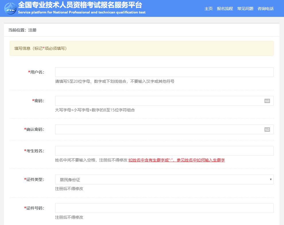 1.一个身份证号和姓名只能注册一次,请勿重复注册