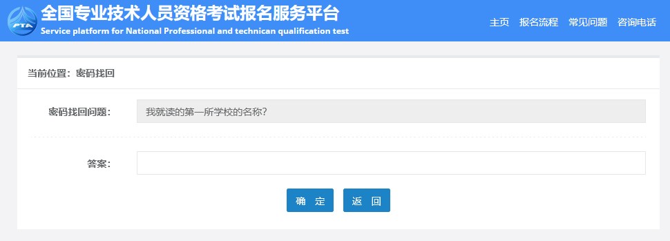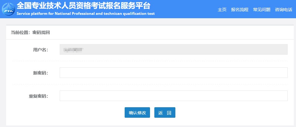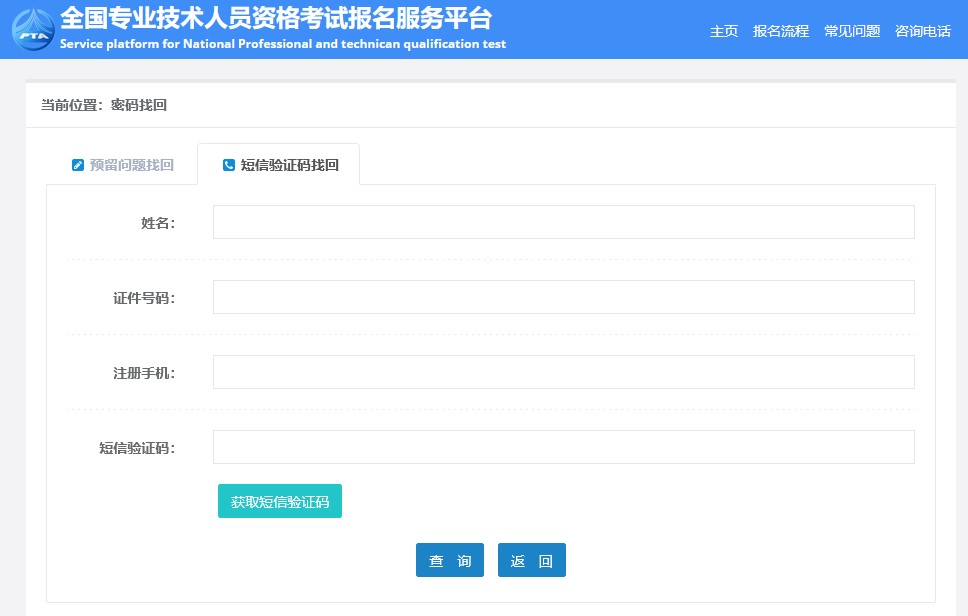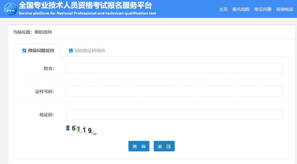 第一种:通过输入姓名,证件号码点击【查询】按钮,查询出考生注册时填写的密码找回问题,填写正确答案后,跳转到密码重置界面浏览注册用户名,并设置新密码;