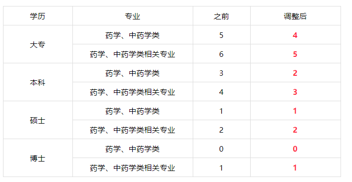 不算!只要是属于以下报考专业中的一个,就属于药学/中药学专业报考,无需增加1年工作年限!