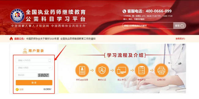 在网页搜索【中药药师协会】,点击【继续教育】栏目里的【公需课程】,即可进入公需课程学习页面,只需输入手机号码、密码和验证码即可登录学习。