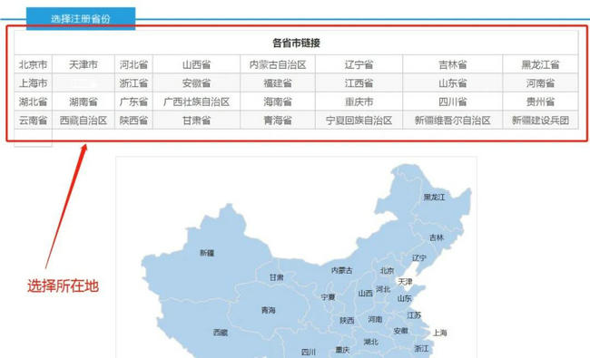 第二步:选择注册省份: