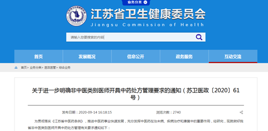 近日,江苏省卫生健康委印发《关于进一步明确非中医类别医师开具中药处方管理要求的通知》(以下简称《通知》),对于非中医类别医师开具中药处方进一步进行了放宽和细化。