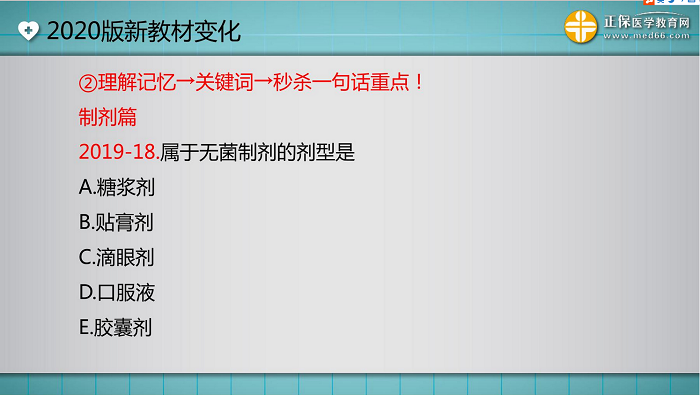 第九、十、十一周 | 第五章 | 约占分值30分 | 预计考试重点为:各剂型的质量要求;注射剂、眼用制剂、片剂、气雾剂、胶剂的附加剂;丸剂包衣、明胶空心胶囊的囊材、软胶囊对填充物料的要求等。(医学教育网原创,转载请注明出处!) |